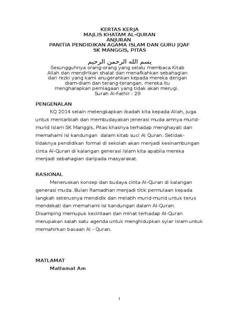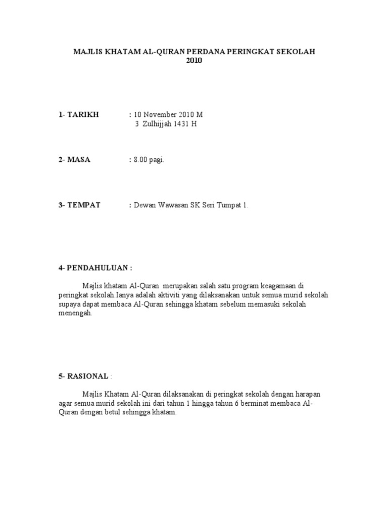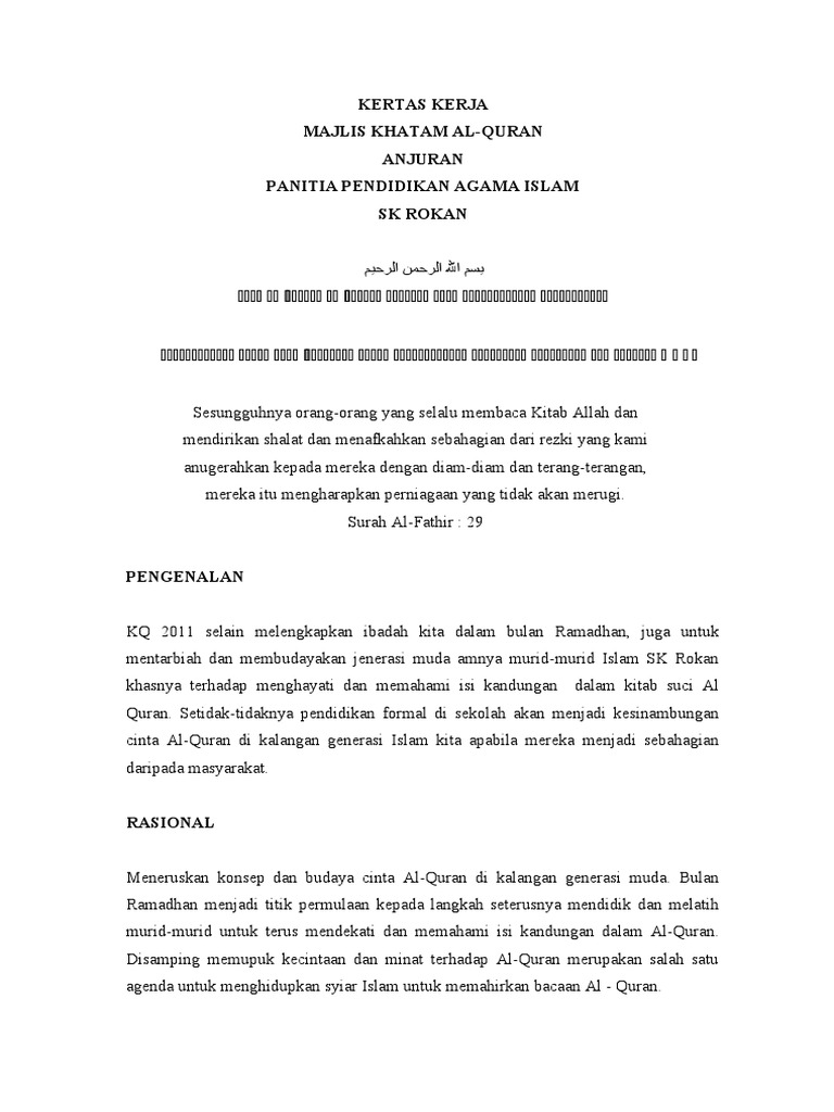 Contoh Kertas Kerja Khatam Quran Pdf
