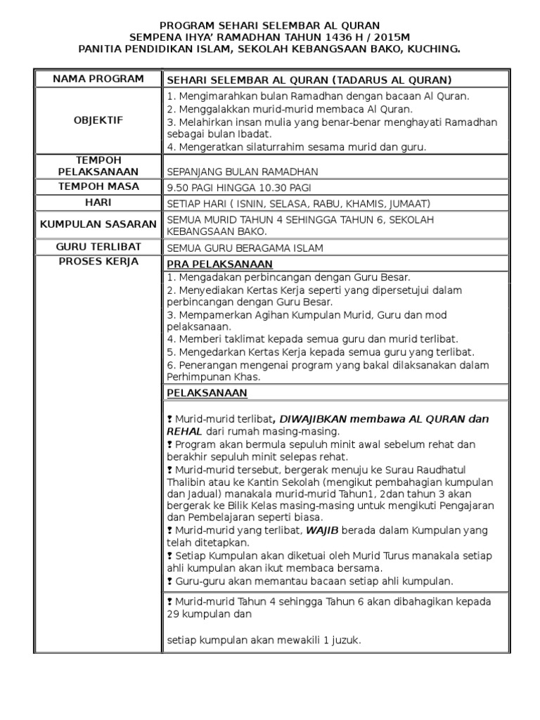 Kertas Kerja Tadarus Al Quran 2015 Pdf